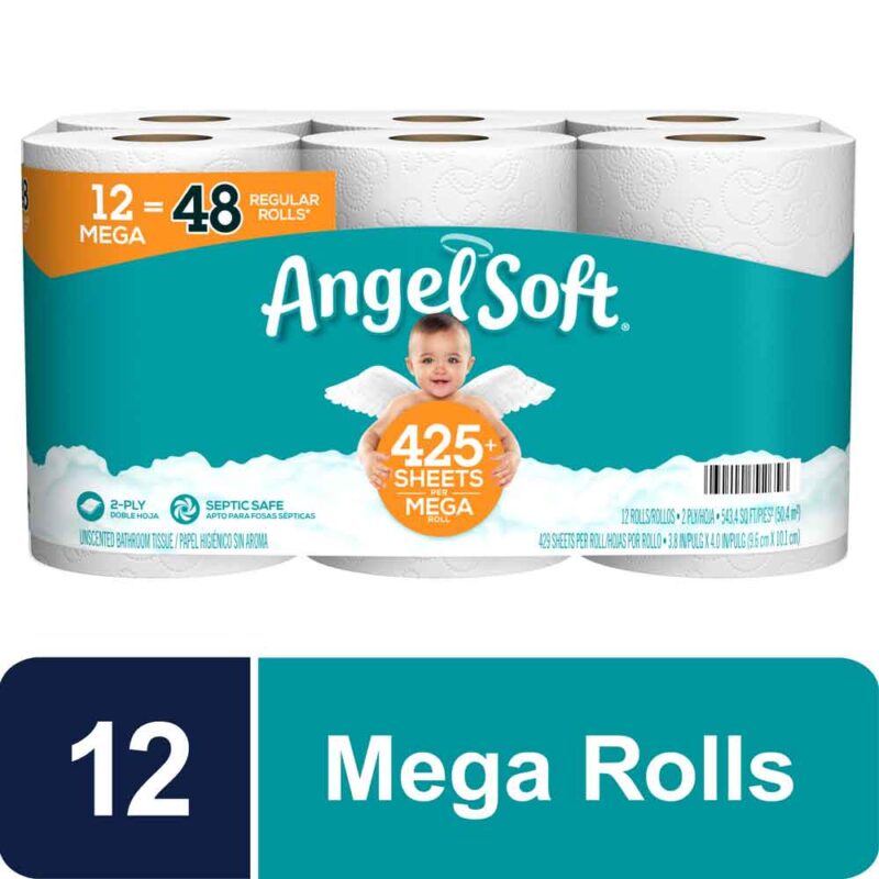 Angel Soft toilet paper delivers the softness & strength your family relies on, always at a price that fits your budget. Each Mega Roll contains 425+ 2-ply sheets, fits standard bathroom toilet paper holders and is flushable and septic safe in standard sewer and septic systems. Angel Soft bath tissue packaging is recyclable. Stock up and save by ordering Angel Soft bath tissue in bulk!