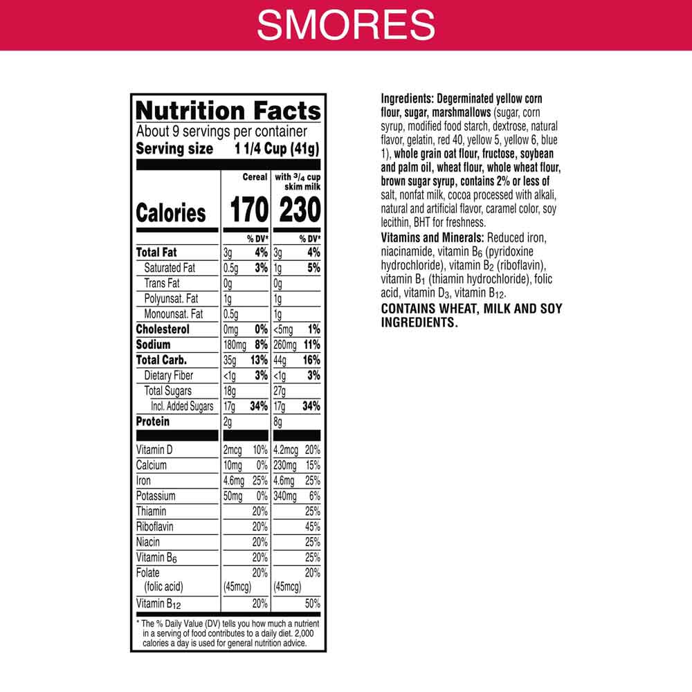 It’s back to make mornings even sweeter! Kellogg’s Smorz Original breakfast cereal brings the taste of a popular campfire treat to your morning table, without the hassle. Indulge your family in the taste of crunchy graham cereal wrapped in a rich chocolatey coating with irresistible marshmallows. This ready-to-eat cereal is ready to delight adults and kids of all ages. Made with delicious ingredients, every serving provides a good source of 8 vitamins and minerals. Enjoy this cereal in a bowl with your favorite dairy or nut milk. Use it as a fun topping for ice cream or pudding. Add it to your favorite cereal bars recipe or homemade sweet and salty snack mix. Eat it by the handful right out of the box at home during video gaming, sports watching, family movie time, and more. Of course you can take a box on your next camping trip, too! Kellogg’s Smorz Original breakfast cereal is a satisfying way to pour more fun into breakfast time or any time.
