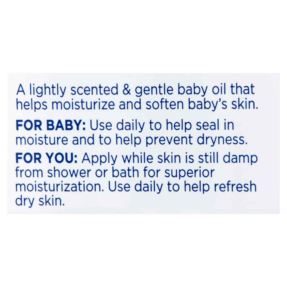 Equate Baby Hypoallergenic Baby Oil seals in moisture and leaves your skin feeling touchable soft. The hypoallergenic aloe vera and vitamin E formula contains no paraben, phthalate, or quaternion 15, and has been dermatologist and pediatrician tested. It is gentle enough for those with sensitive skin and safe to add to your baby’s bath time, as well. This luxurious oil isn’t just for little ones – Use it to enhance your own skincare routine, warm it up and use it as a massage oil or add some to your foot soak for an extra-soothing treat. This oil will soften your skin and protect it from moisture loss with a light, delicate scent. You’ll find it to be the ideal choice for the whole family! with so many uses at such an affordable price, Equate Baby Hypoallergenic Baby Oil is the perfect addition to your bathroom cabinet. A lightly scented & gentle baby oil that helps moisturize and soften baby’s skin.