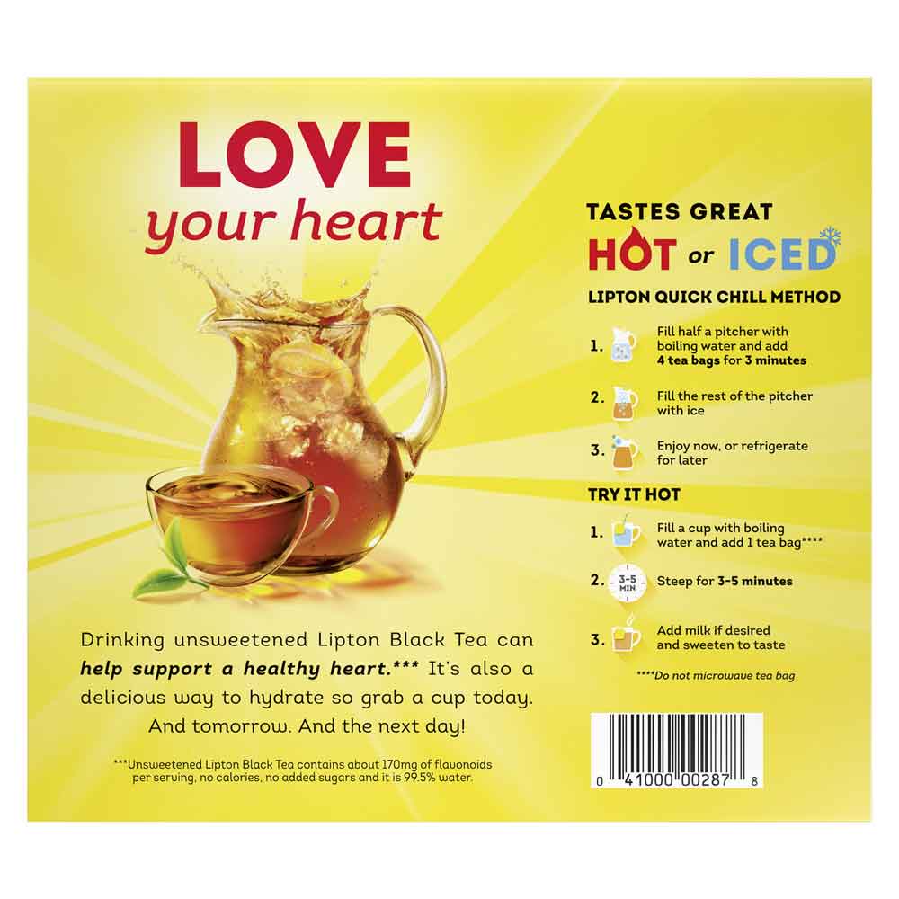 - LOVE YOUR HEART: drinking Lipton unsweetened black tea has can help support a healthy heart as part of a healthy, balanced diet*