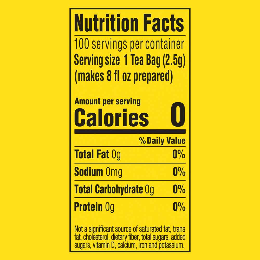Our Master Blenders have crafted the ultimate black tea blend, made to capture a pure, natural tea taste to enjoy anytime. The bold, smooth flavor of Lipton Black Tea comes from tea leaves picked right when they’re freshest, then carefully pressed to capture the tea’s natural taste and rich aroma for a one-of-a-kind tea experience. Lipton Black Tea is made from real tea leaves blended to be equally delicious whether enjoyed hot and invigorating over breakfast or iced for a refreshing sip with your next snack break or backyard get together with friends. As you sip, enjoy knowing Lipton Black Tea is Rainforest Alliance Certified, helping to support sustainable farm practices and farmers around the world. It’s also a delicious way to love your heart, since drinking unsweetened black tea can help support a healthy heart as part of a healthy, balanced diet*. Daily consumption of 2-3 eight fluid-ounce cups of Lipton Unsweetened Black Tea provides your body with naturally occurring flavonoids, which can help support healthy blood circulation essential for heart health. Each box comes with tea bags tucked into tea trays to help preserve their fresh taste and bold aroma, and with 100 tea bags in each box, you’ll always have your favorite tea on hand. For your next cup of tea, discover the Lipton difference and treat yourself to the superior taste of fresh-brewed Lipton Black Tea. We want every cup of tea to brighten your day. *Unsweetened Lipton Black Tea contains about 170mg of flavonoids per serving, no calories, no added sugars, and is 99.5% water