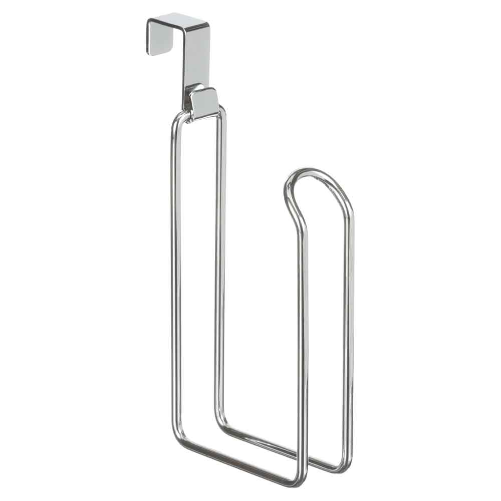 Add style and function to your bathroom with the Mainstays Over-the-Tank Toilet Paper Holder. Designed to be placed over the toilet tank, this innovative bathroom organizer conveniently dispenses and stores one roll of toilet paper, including standard, mega, and jumbo sized rolls. The hanging over-the-tank design keeps the roll of toilet paper clean, dry, and off the floor until ready for use and does not need to be mounted to a wall or cabinet. Simply hang the holder over the side of the toilet tank to set up – no drilling or hardware required! The modern design with polished chrome finish can be used in any bathroom around the home, while the durable steel construction stands up to every day use and is easy to clean., this slim-profile toilet paper holder is ideal for adding storage and organization in unused space next to the toilet.